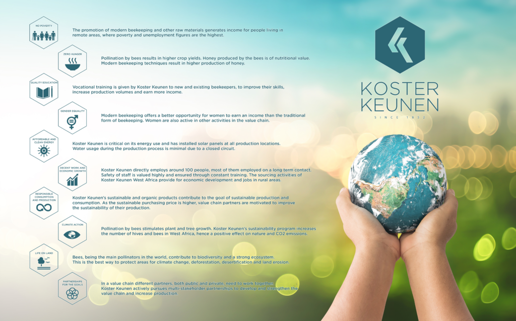 Sustainable and organic products create a more engaged relationship with value chain partners. Koster Keunen will in the coming years increase the number and volume of sustainable and organic products. Promoting modern beekeeping and female participation is part of this goal.