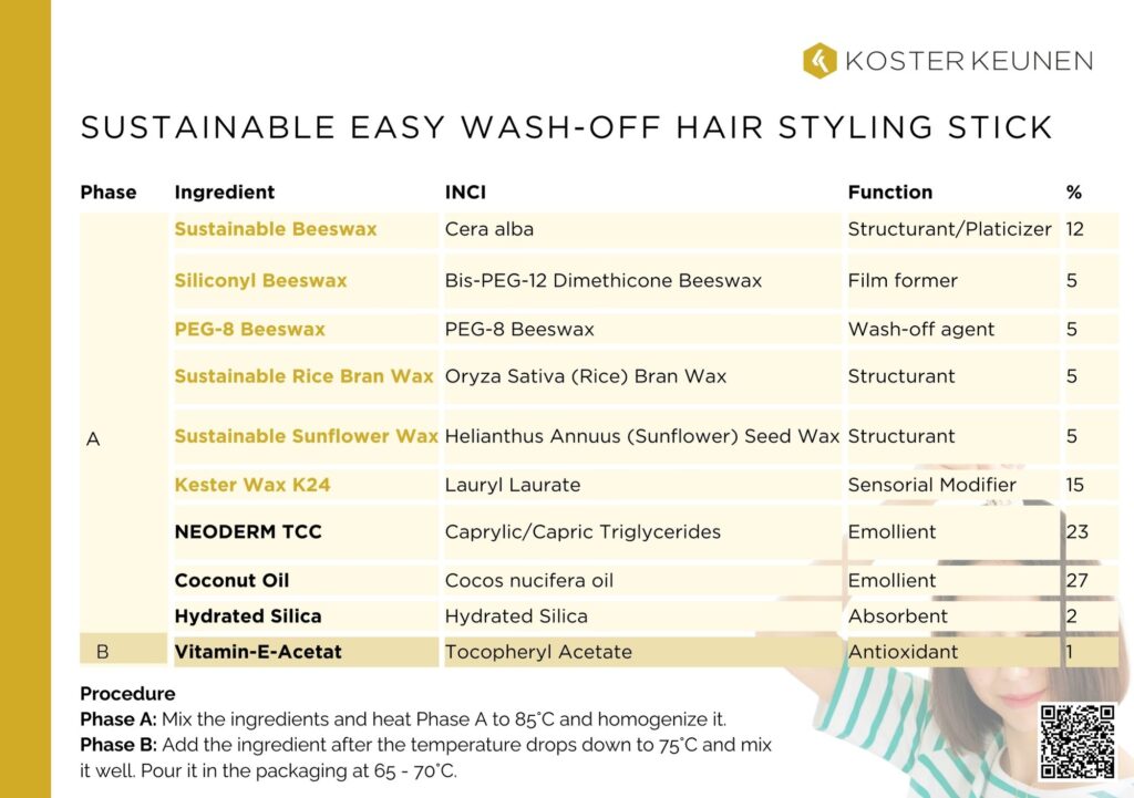 Sustainable Easy Wash-off Hair Styling Stick formulation