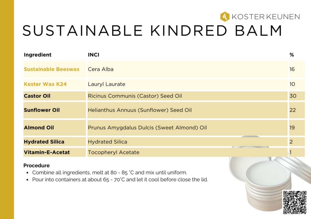 Sustainably sourced beeswax from West Africa. Multifunctional; makes anhydrous formulas soft and pliable, makes emulsions glossy, thick and with excellent pickup. Structurant, plasticizer, thickener.